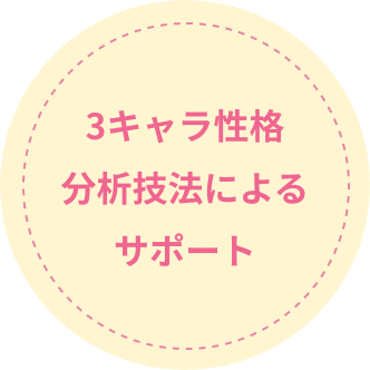 月に一度のカウンセリングとライン・電話相談によるサポートに加えて、心理学、統計学をベースにした3キャラ性格分析技法を導入し、ご本人の性格や相性の合うお相手を診断することでスムーズな婚活を行います。